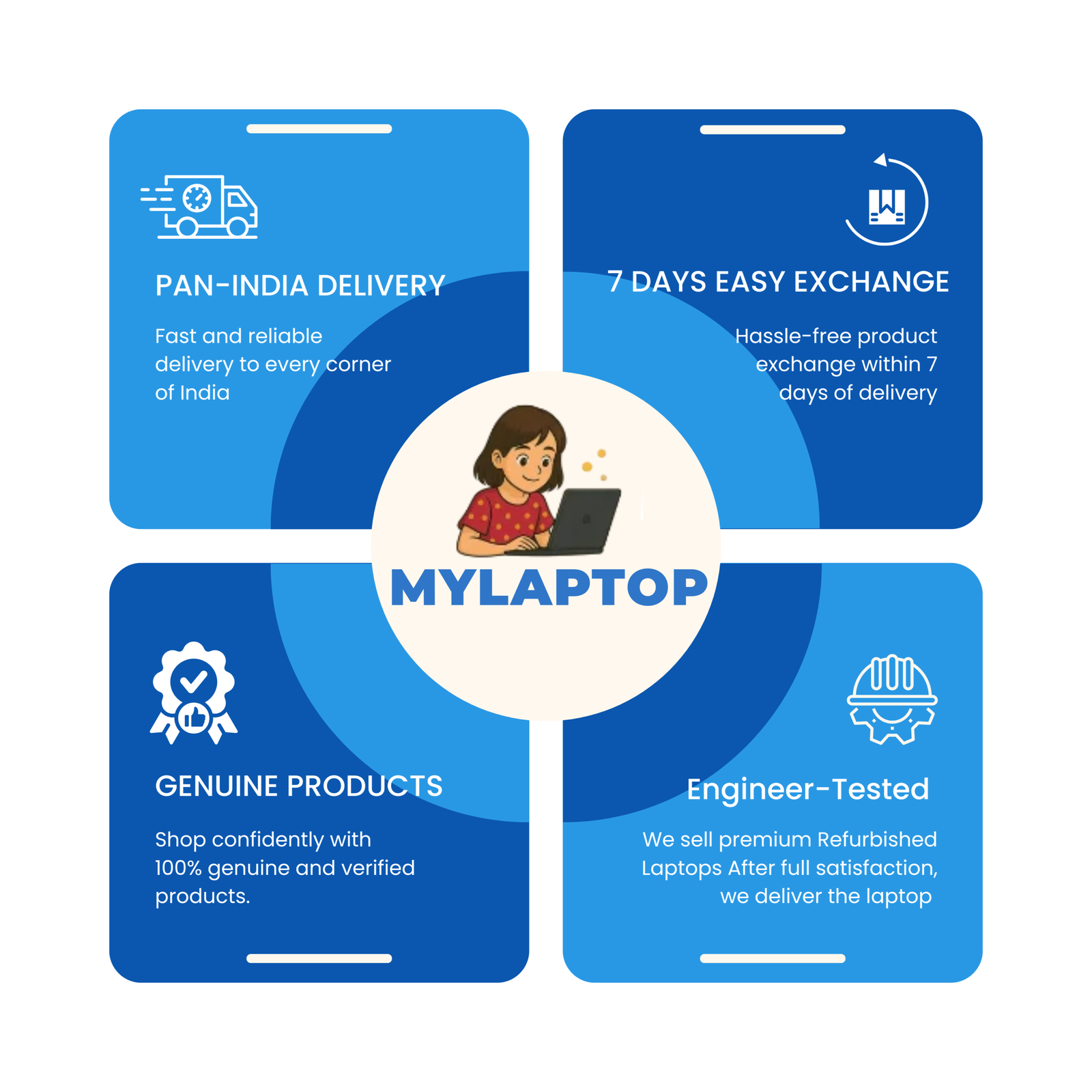At MyLaptop.in, we ensure safe and timely delivery across India. Free standard shipping is available on prepaid orders above ₹5,000, while orders below this value carry a ₹149 shipping fee. Delivery usually takes 4–7 business days, and express delivery (where available) takes 1–3 days. Tracking details are shared via email/SMS after dispatch. In case of damaged, missing, or delayed shipments, please contact us within 48 hours at sales@mylaptop.in for quick assistance.